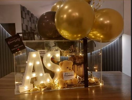 The package includes a luxury flower bouquet made with fresh, handpicked blooms symbolizing love and commitment. Alongside the bouquet, a customized anniversary cake adds sweetness to your special day, beautifully packed to suit the romantic occasion. To make it even more memorable, the set may include chocolates, candles, or a personalized message card — perfect for expressing heartfelt emotions.