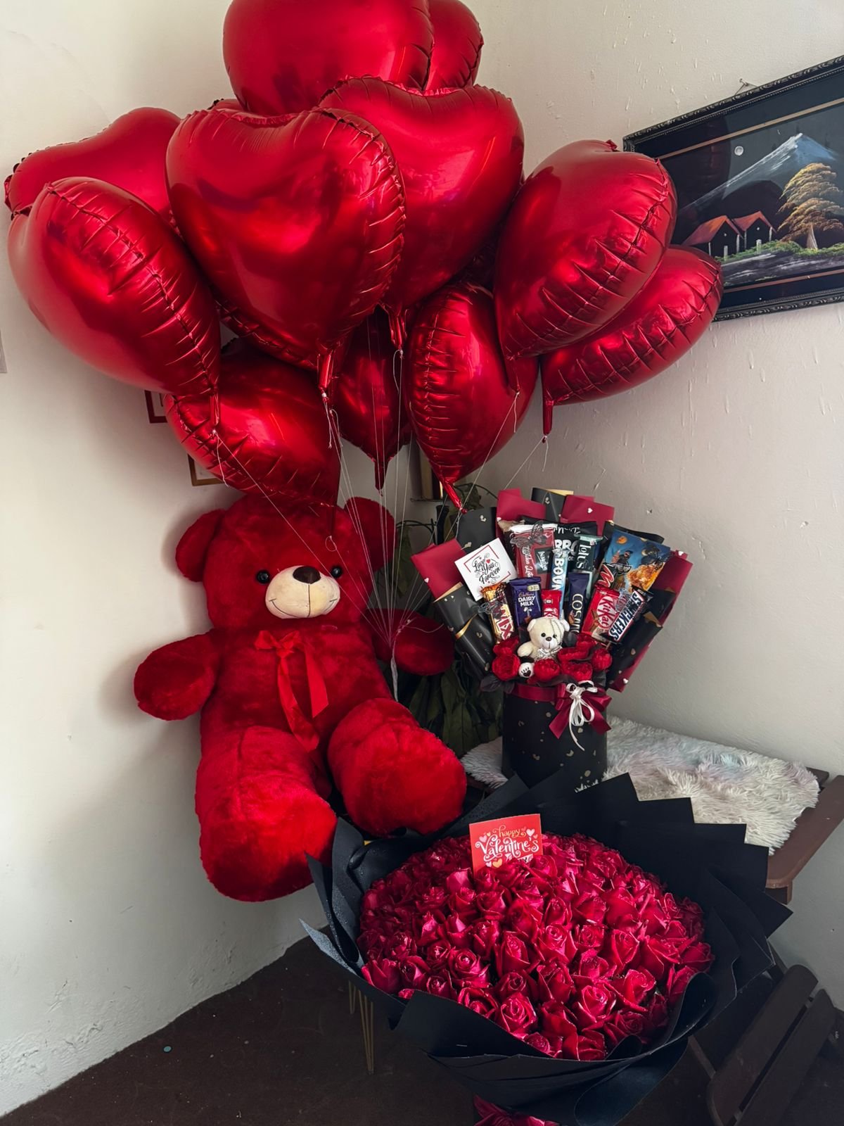 Perfect as a complete Valentine’s Day surprise with flowers, chocolates, balloons, and teddies all in one elegant setup 💝