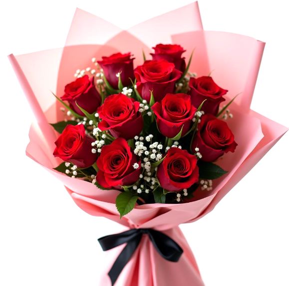 Gift a bunch of 10 red Roses with seasonal filler wrapped in cellophane with a red ribbon bow for your loved ones and make any occasion special.