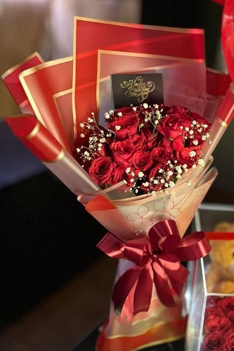 Satin Red Ribbon Bow – enhances the bouquet’s classy finish